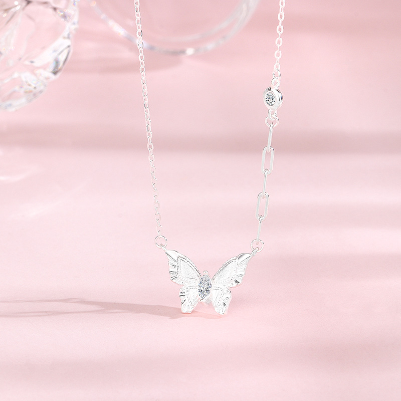 Graceful and symbolic, this S925 Sterling Silver Gold Brushed Butterfly Necklace blends timeless elegance with a refined New Chinese style. The butterfly motif represents transformation, beauty, and freedom, making this necklace both meaningful and stylish.